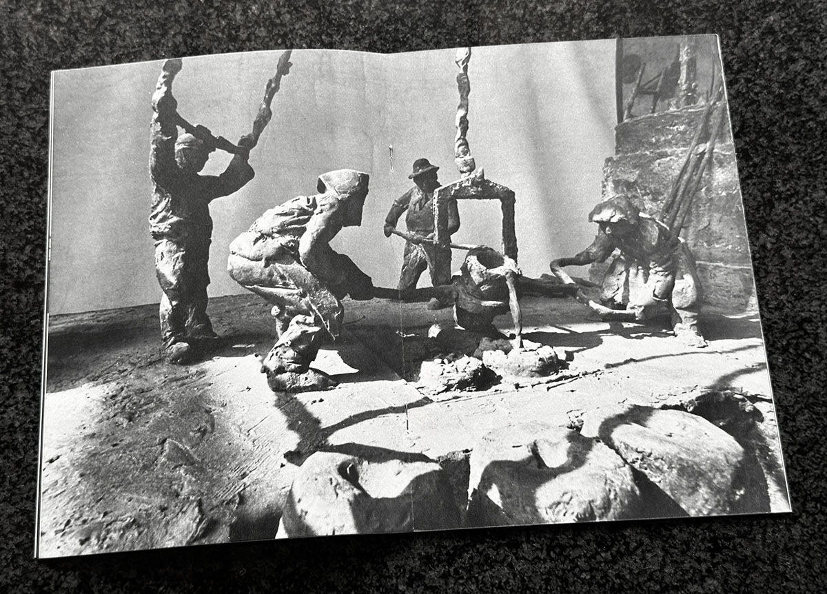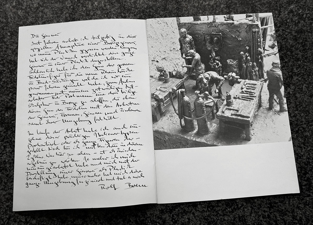 «Seit Jahren arbeite ich teilzeitig in dieser speziellen Atmosphäre einer Bronzegiesserei, wo meine Plastiken gegossen werden. Langsam hat sich der Wunsch verdichtet diese ganze Giesserei in einer Plastik darzustellen…»